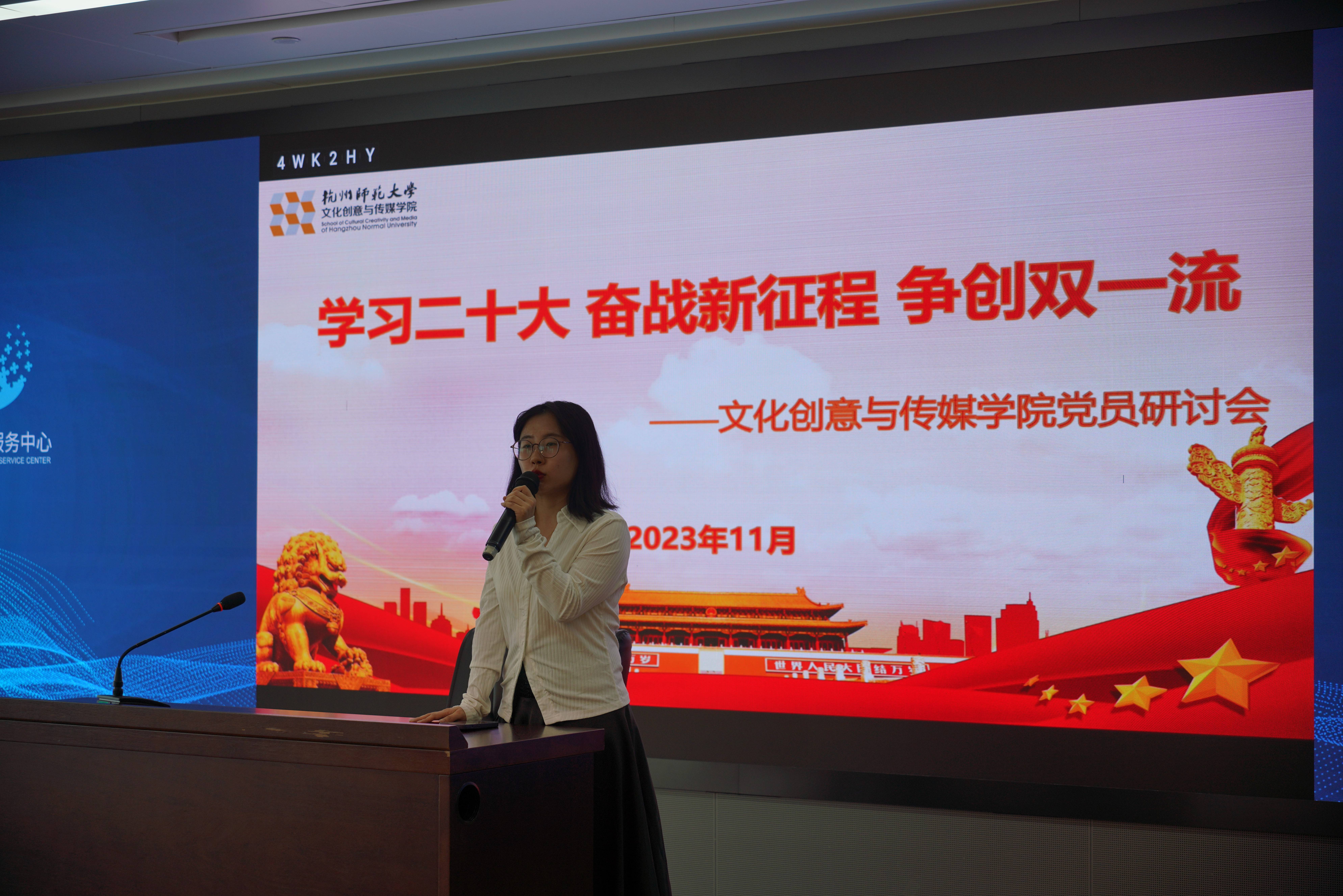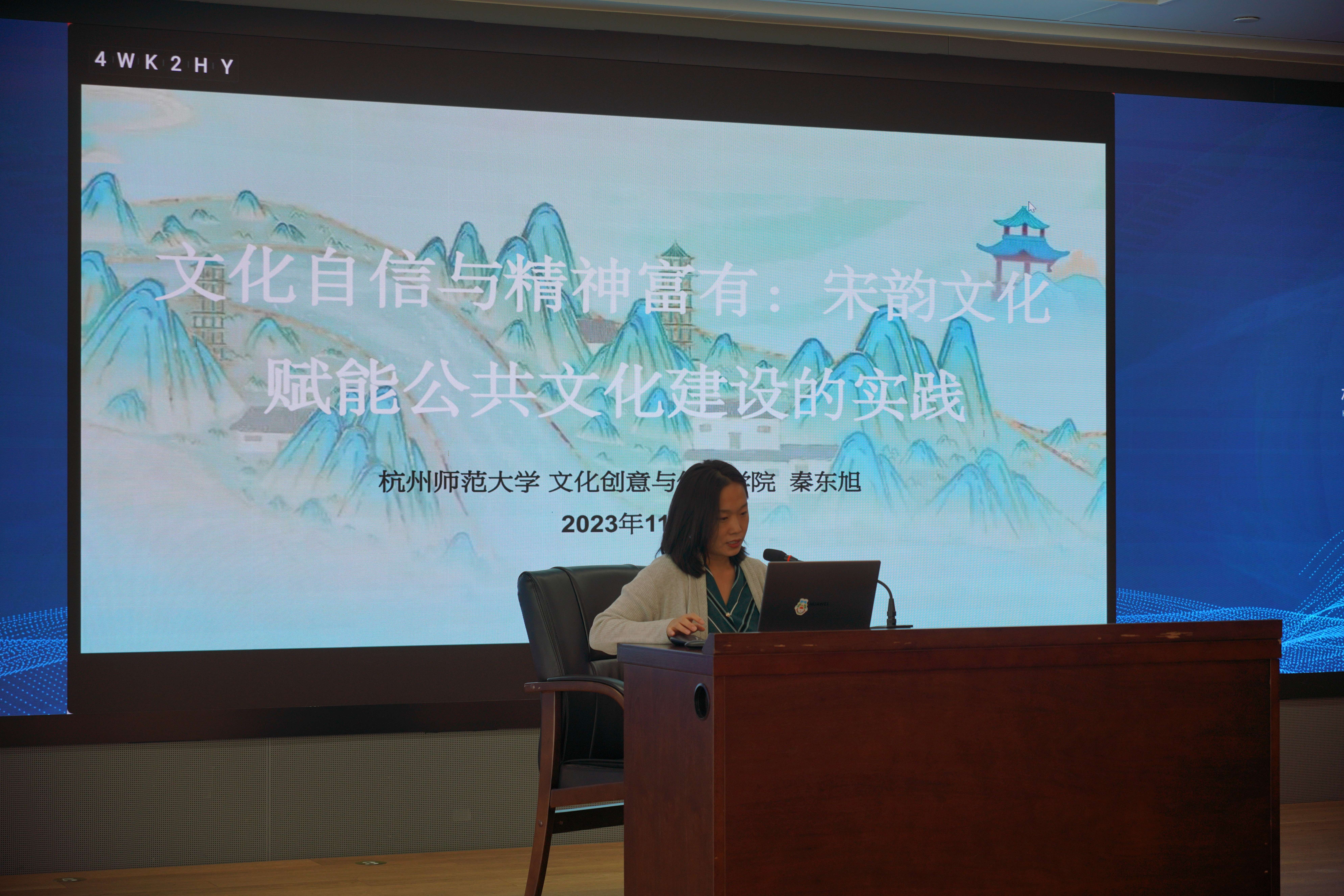 “师大青博讲师团”成员、学院教工党支部书记秦东旭做了题为《文化自信与精神富有:宋韵文化赋能公共文化建设的实践》的主题宣讲,向大家介绍了宋韵文化及其赋能公共文化建设的实践,提出了公共文化推进宋韵文化传世的优化路径。
