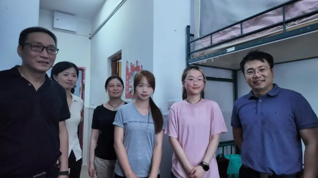 学院领导与班主任、辅导员一同走进新生宿舍,细致了解同学们的入住情况,贴心叮嘱生活注意事项,并温馨提醒防诈骗、宿舍安全等事宜。