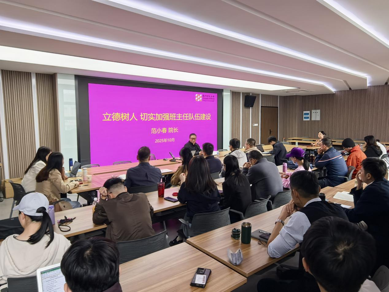 10月22日下午,学院在下沙校区8-510会议室召开全体班主任会议,院长范小春、院党委副书记周微微出席会议,辅导员及全体班主任参会。本次会议聚焦班主任工作提质、学生培养增效,围绕工作考核管理、优秀经验分享、毕业生就业指导及网络思政建设等相关议题展开,为下一阶段班级管理与育人工作划定重点、明确路径。